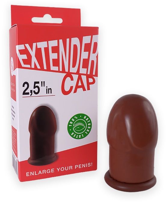 Коричневый латексный удлинитель пениса 2.5 in. Прирост длины - 6,3 см.