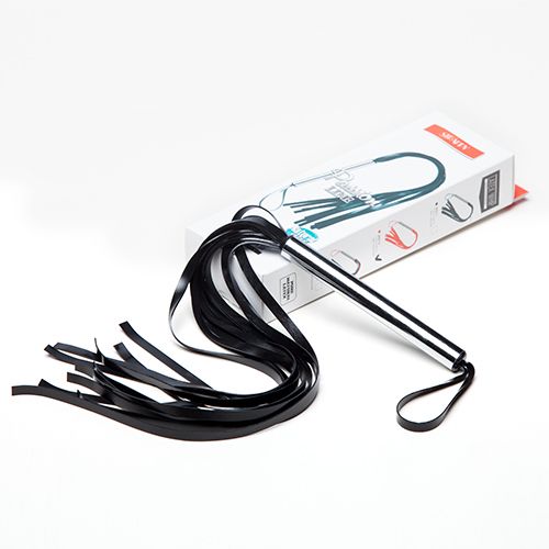 Плеть средняя, изготовлена из натурального латекса, имеет 10-12 хвостов. Хвосты имеют вид лент. Ручка металлическая, хромированная. Длина ручки - 14 см.