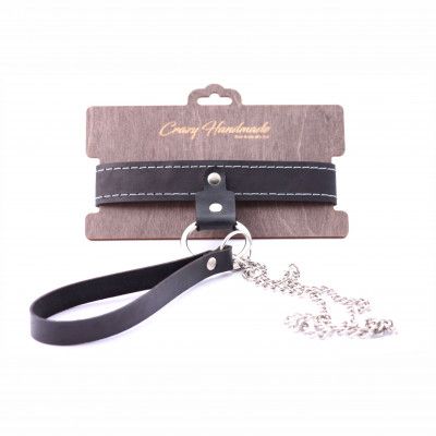 Узкий однослойный ошейник с поводком. Ошейник выполнен из натуральной кожи и имеет кольцо для крепления поводка. Ширина ошейника - 3 см. Длина ошейника - 38 см. Длина поводка - 80 см.