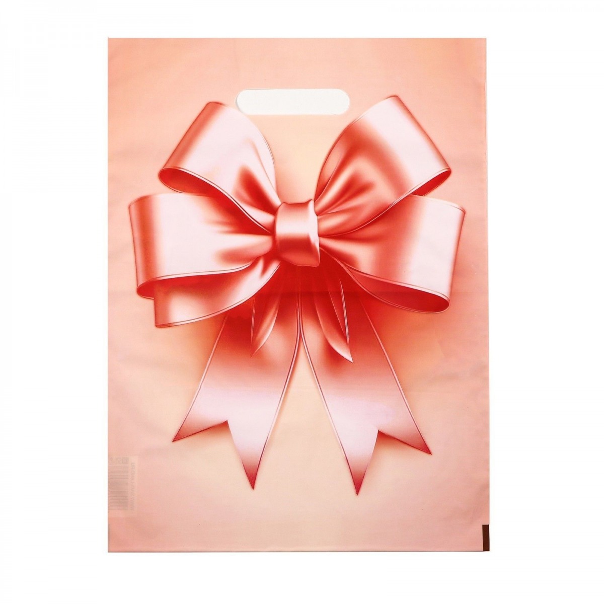 Пакет с принтом в виде банта с вырубной ручкой (30х40 см).