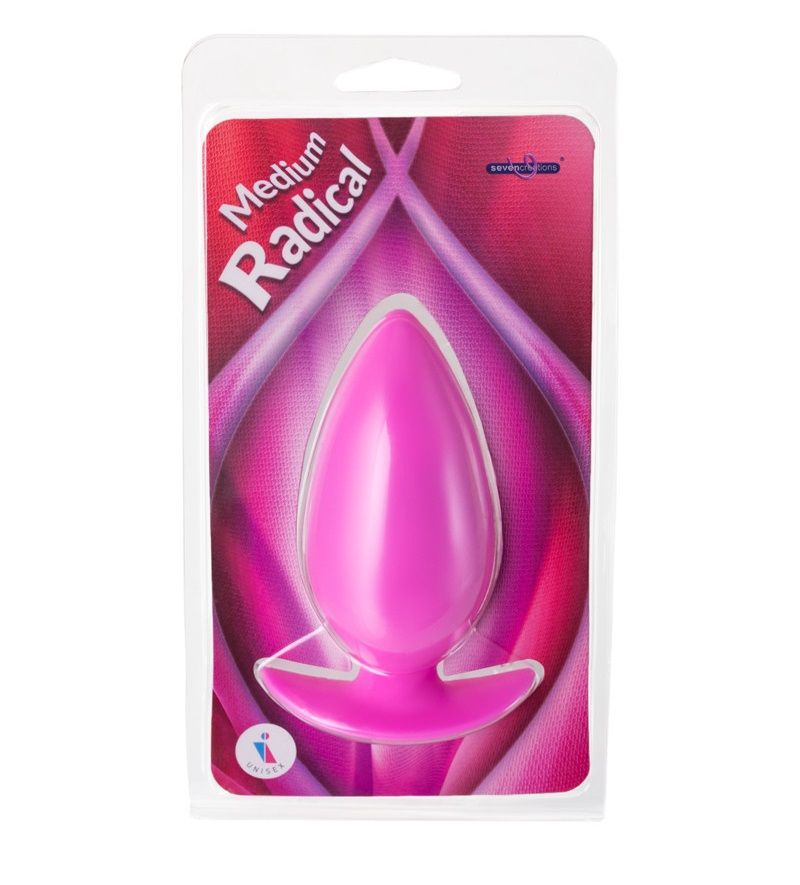 Средняя розовая анальная пробка Radical. Выполнена из приятного на ощупь силикона. Рабочая длина - 8,5 см.