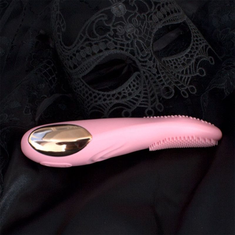 Нежный стимулятор в виде языка FRIDA подарит ласки, схожие с ласками настоящего языка. На кончике «язычка» дополнительные силиконовые ворсинки и рифленая поверхность - они усилят приятные ощущения. Вибромассажер оснащен не только 7 режимами мощной вибрации, но и 3 режимами ротации. Прибор предназначен как для внешней, так и для внутренней стимуляции, он безусловно полезен не только в одиночных играх для стимуляции клитора или сосков, но и в парных во время прелюдий.