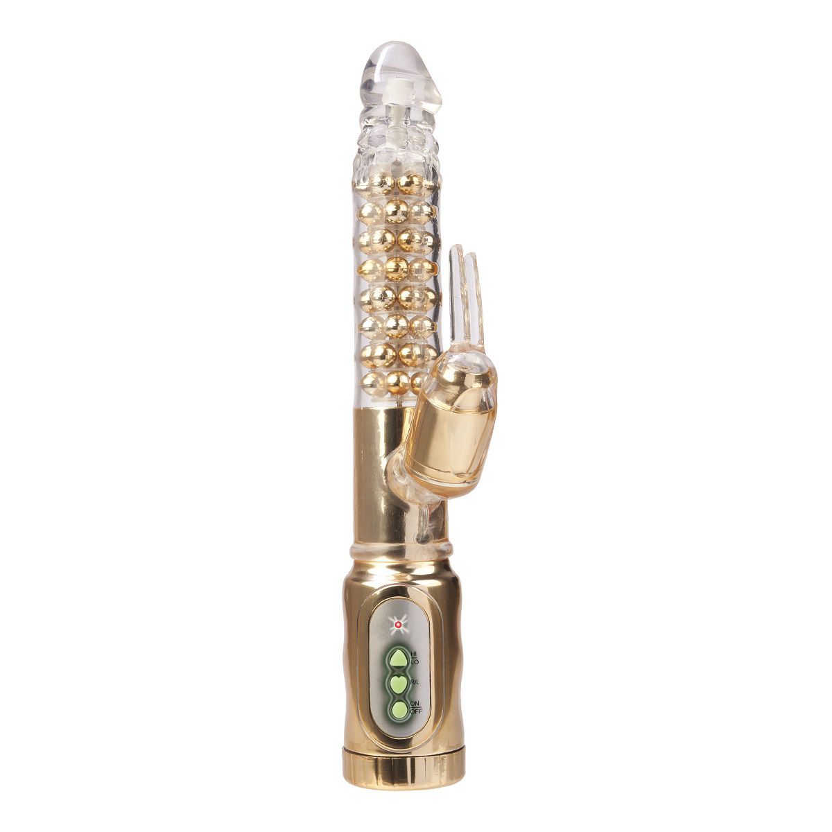 48 жемчужин наслаждения расположенные по всей окружности вибромассажера доставят неземное удовольствие каждой своей обладательнице. Вибромассажер имеет уникально длинную поверхность с вращающимися шариками-жемчужинами. Водонепроницаемый, с двумя скоростями вибрации клиторального стимулятора. Также имеет обратный ход движения шариков. Пульт управления из пластика, покрыт золотистым покрытием. Упаковка: Коробка