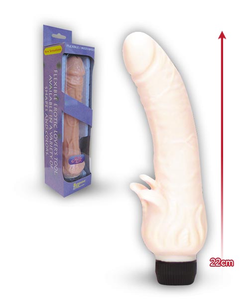 Вибратор телесного цвета. Выполненный в виде реалистик, с лепестками у основания для стимуляции клиторальной стимуляции. Многоскоростной.