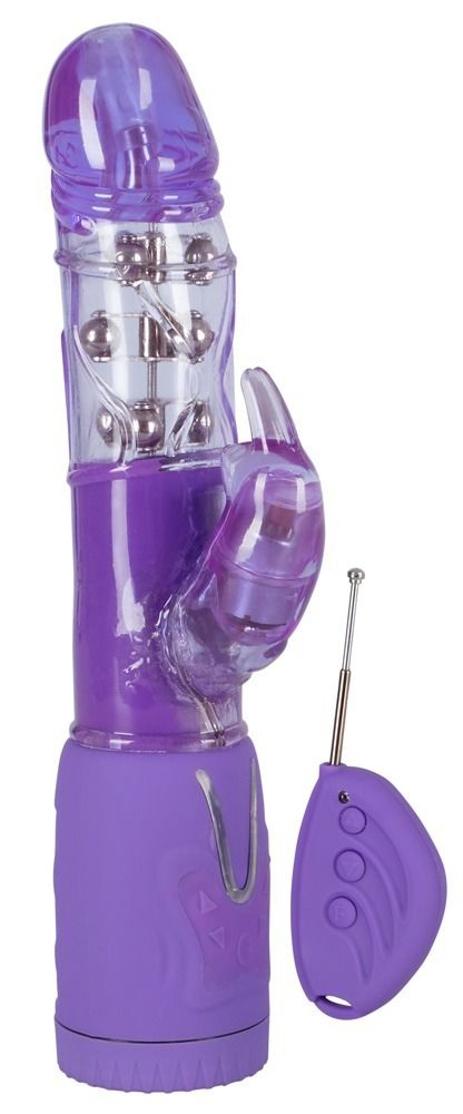 Фиолетовый вибратор хай-тек Control Me Rabbit с пультом ДУ. Клиторальный стимулятор выполнен в виде зайчика. Головка и шарики внутри вращаются. Мультискоростная вибрация. Рабочая длина - 16 см.