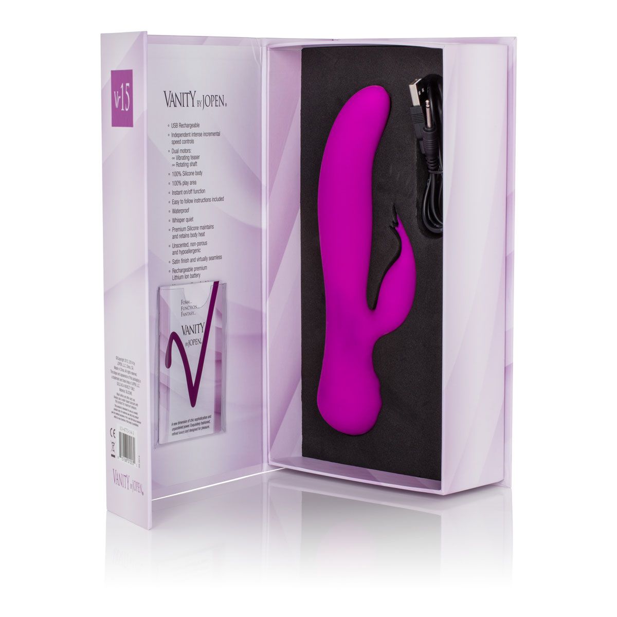 Вибромассажер с ротацией Vanity Vr15 для двойной стимуляции - способен осуществить все ваши желания. Вращающийся ствол нежно массирует стенки влагалища, раскрывая мышечные складки и воздействуя на спящие нервные окончания, пробуждая женскую чувствительность и сексуальность. Виброимпульсы и мягкий язычок ласкают зону вульвы и нежный клитор, усиливая ощущения и приближая пик удовольствия. Плавные линии соответствуют изгибам Вашего тела, будоража фантазию. Эргономичный дизайн позволяет затронуть все потаённые места, которые вызывают сильнейшее сексуальное возбуждение. Парите в оргазмических небесах! Система блокировки, автоблокировка активируется после выключения. Бесшумный, 100% водонепроницаемый. Время беспрерывной работы на низкой скорости - 6 часов на высокой - 1 час. Зарядка USB в комплекте, полный заряд за 3 часа. Рабочая длина - 13,25 см. Длина клиторального стимулятора - 7 см диаметр - 2,5 см.
